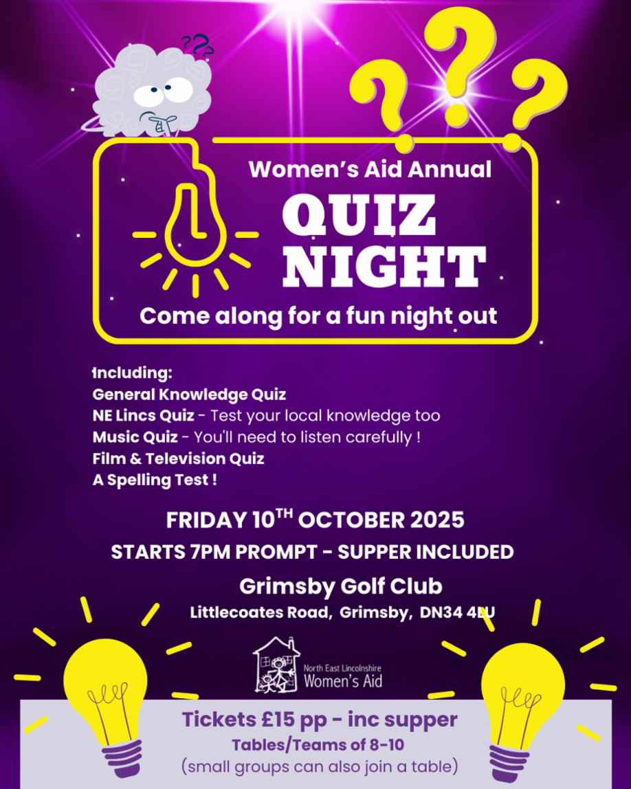 Every ticket sold helps raise vital funds for Women’s Aid North East Lincolnshire, supporting women, children and families affected by domestic abuse. By joining us, you’ll not only enjoy a brilliant evening of fun and laughter but also make a real difference in your community.